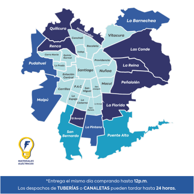 -Las compras realizadas antes de las 12:00 horas, Serán entregadas el mismo día en Horario Comprendido desde las 15:00 horas a las 21:00 horas. (Según Tarifa Normal). *Los despachos de TUBERÍAS y/o CANALETAS pueden tardar hasta 24 horas.